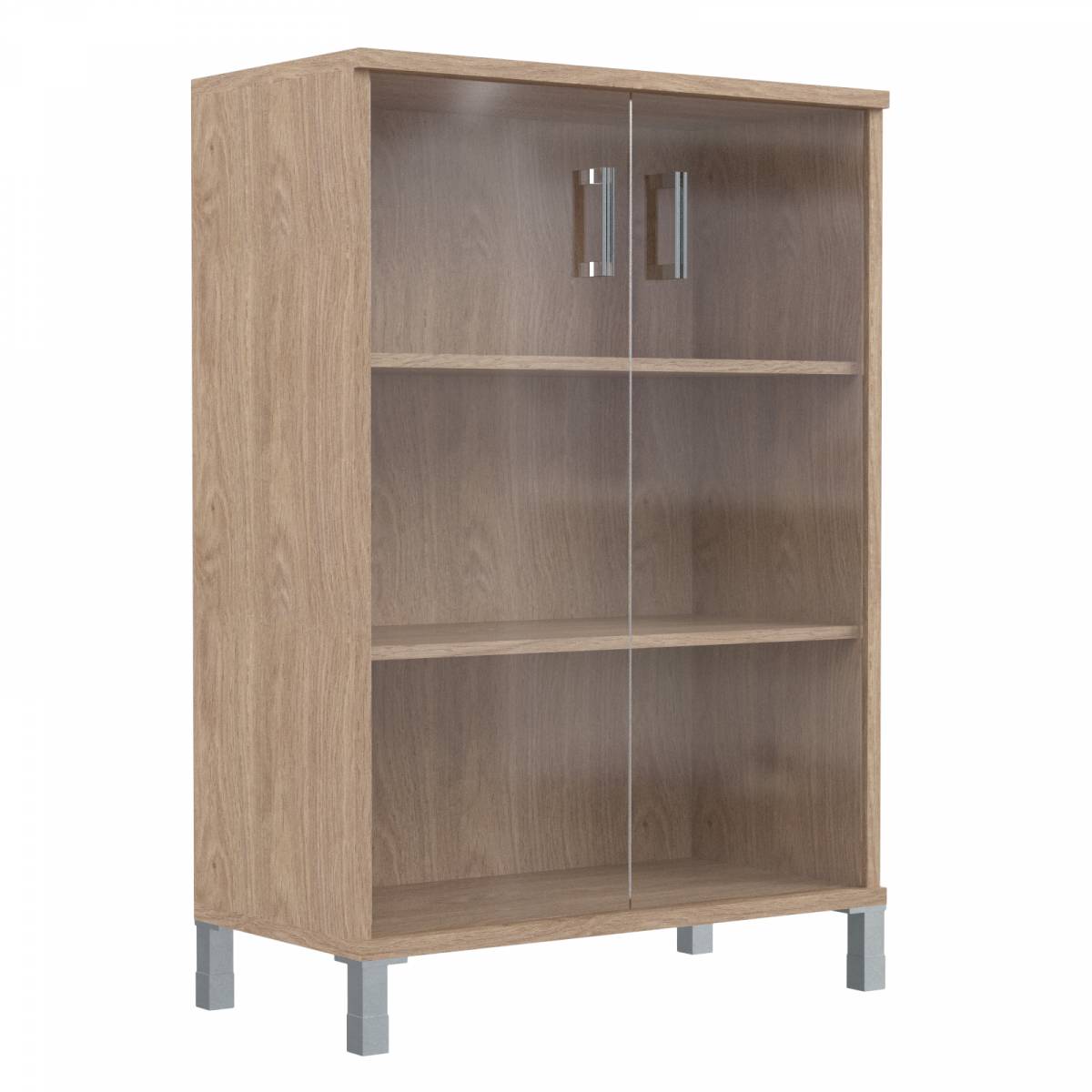 Шкаф низкий со стеклянными дверьми в AL-рамке B 410.4 Дуб Девон 900х450х920