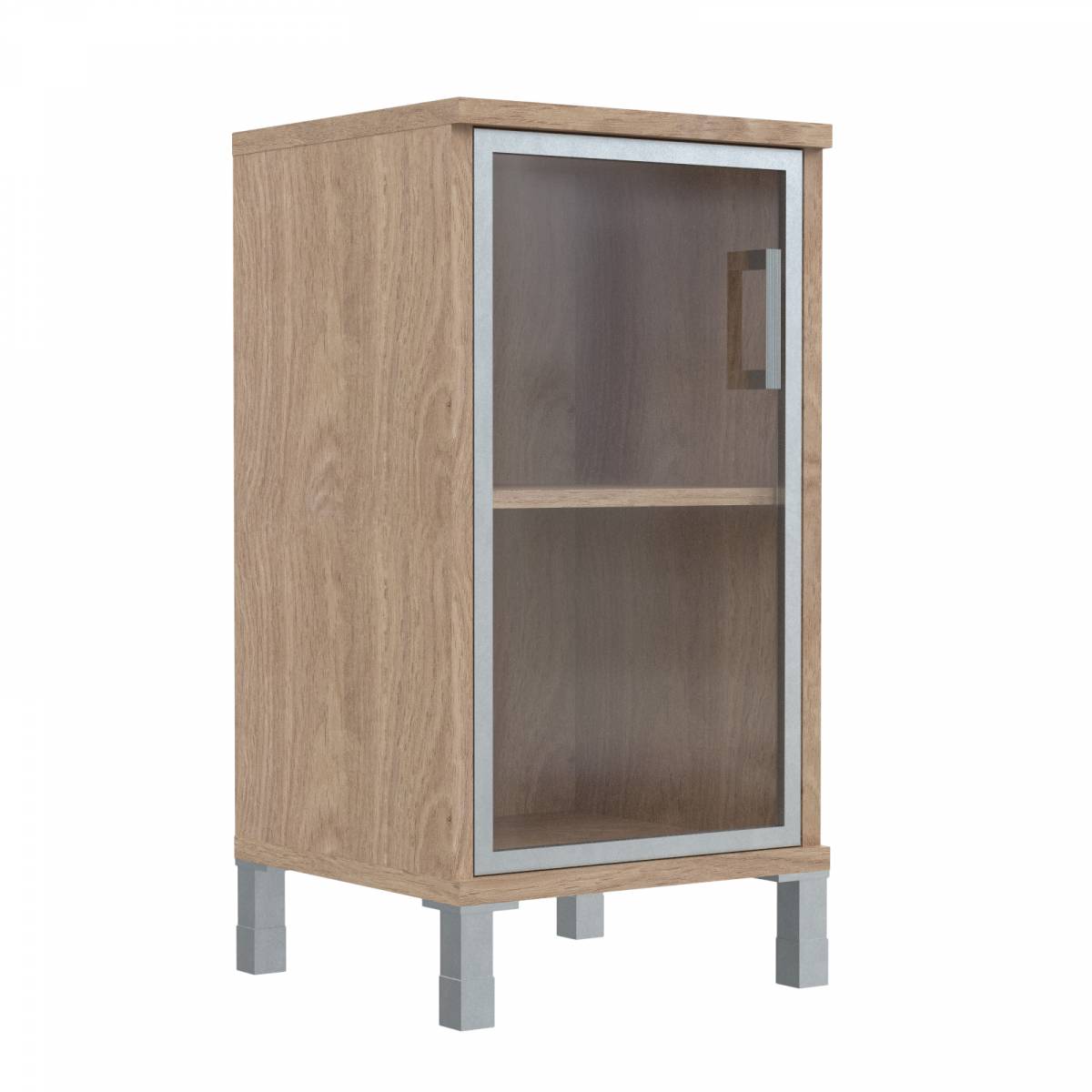 Шкаф-колонка низкая со стеклянной дверью в AL-рамке B 411.4(L) Дуб Девон 475х450х920